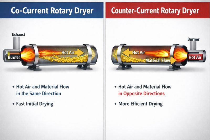 Co‑Current vs Counter‑Current Rotary Dryers: How to Choose Based on Product Temperature