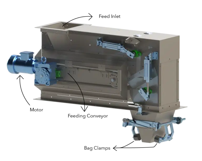 Our industrial bagging machines are very reliable using conveyor belt as the main feeder to the spout.